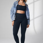 These leggings offer medium compression, buttery soft 4-way stretch fabric, and a high-waisted, double-lined waistband for tummy support. The "V" seams accentuate your waist and glutes, with a 28-inch inseam perfect for medium-intensity activities and a smooth, flattering fit.