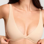 This plunge bra combines natural shaping with effortless comfort, thanks to its breathable double-layer fabric and unpadded V-cut cups. Designed for a smooth, versatile look under everyday outfits, it offers gentle underwire lift and customizable fit through adjustable straps and back closure.