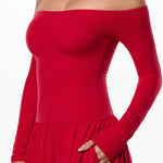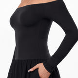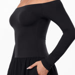 - Off-the-shoulder long-sleeve design creates an elegant, feminine look