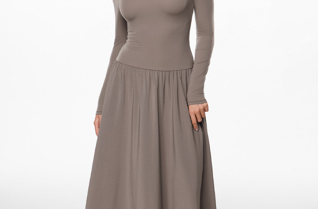 - Single-layer skirt with fluid drape enhances movement and flatters curves