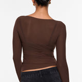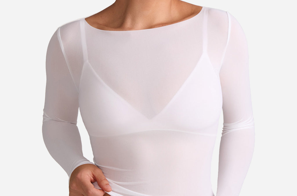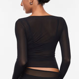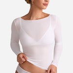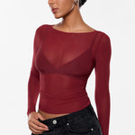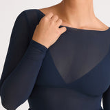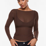 Cosnufy® Mesh Boat Neck Long Sleeve Top