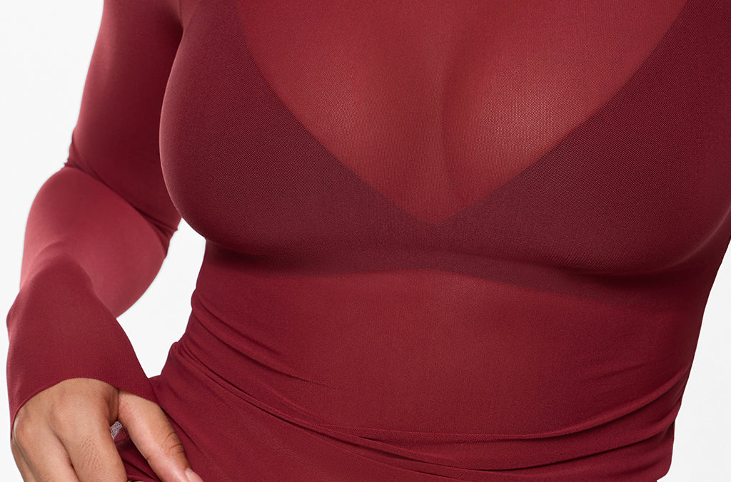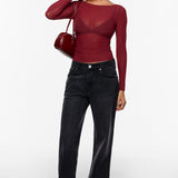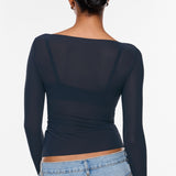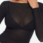 From the Cosnufy Collection, this mesh boat-neck top captures an easy balance of sensuality and comfort. Its airy, lightweight feel and delicate transparency add a touch of effortless charm—made to complement everything from casual denim to sleek night-out looks.