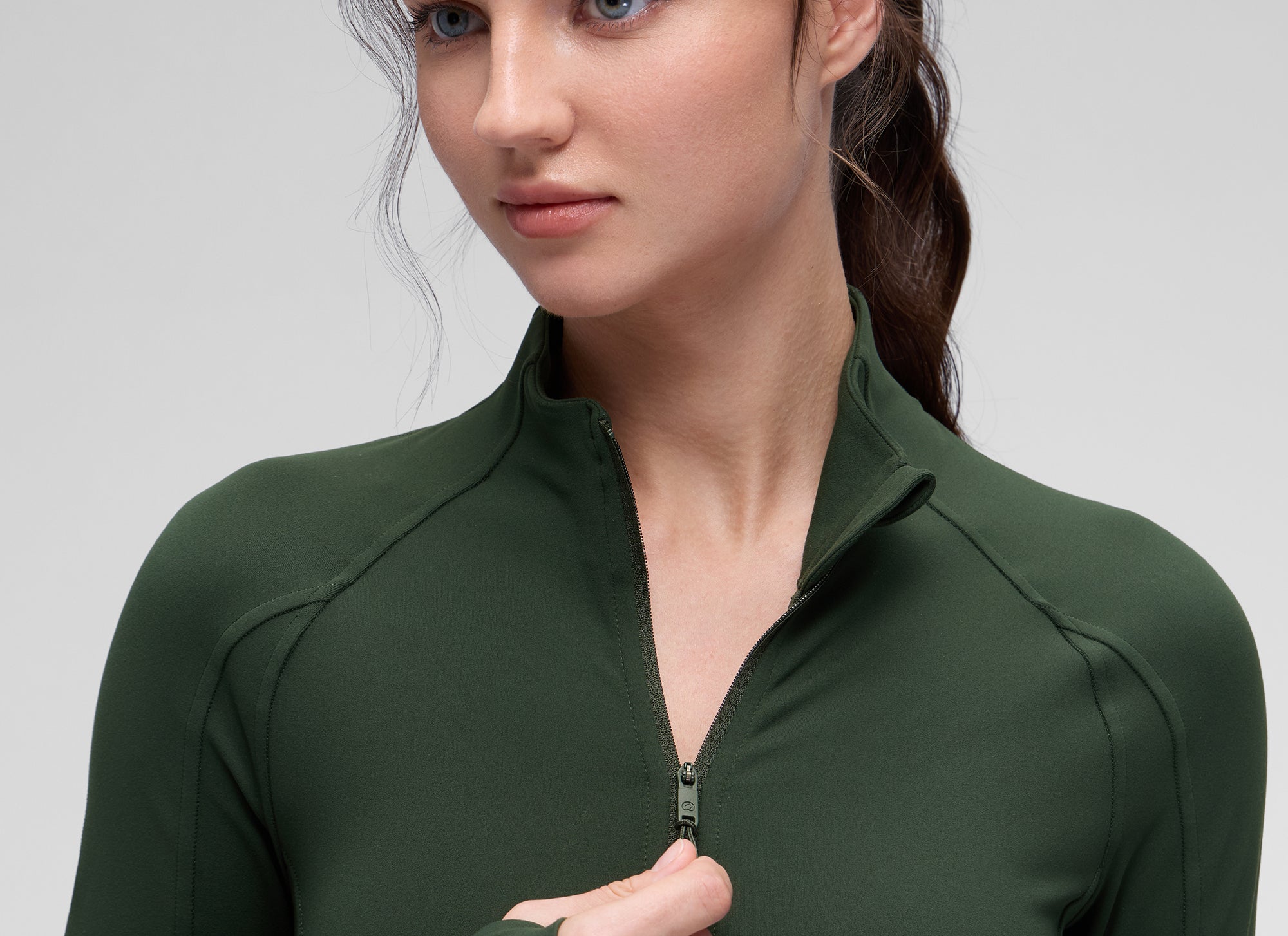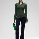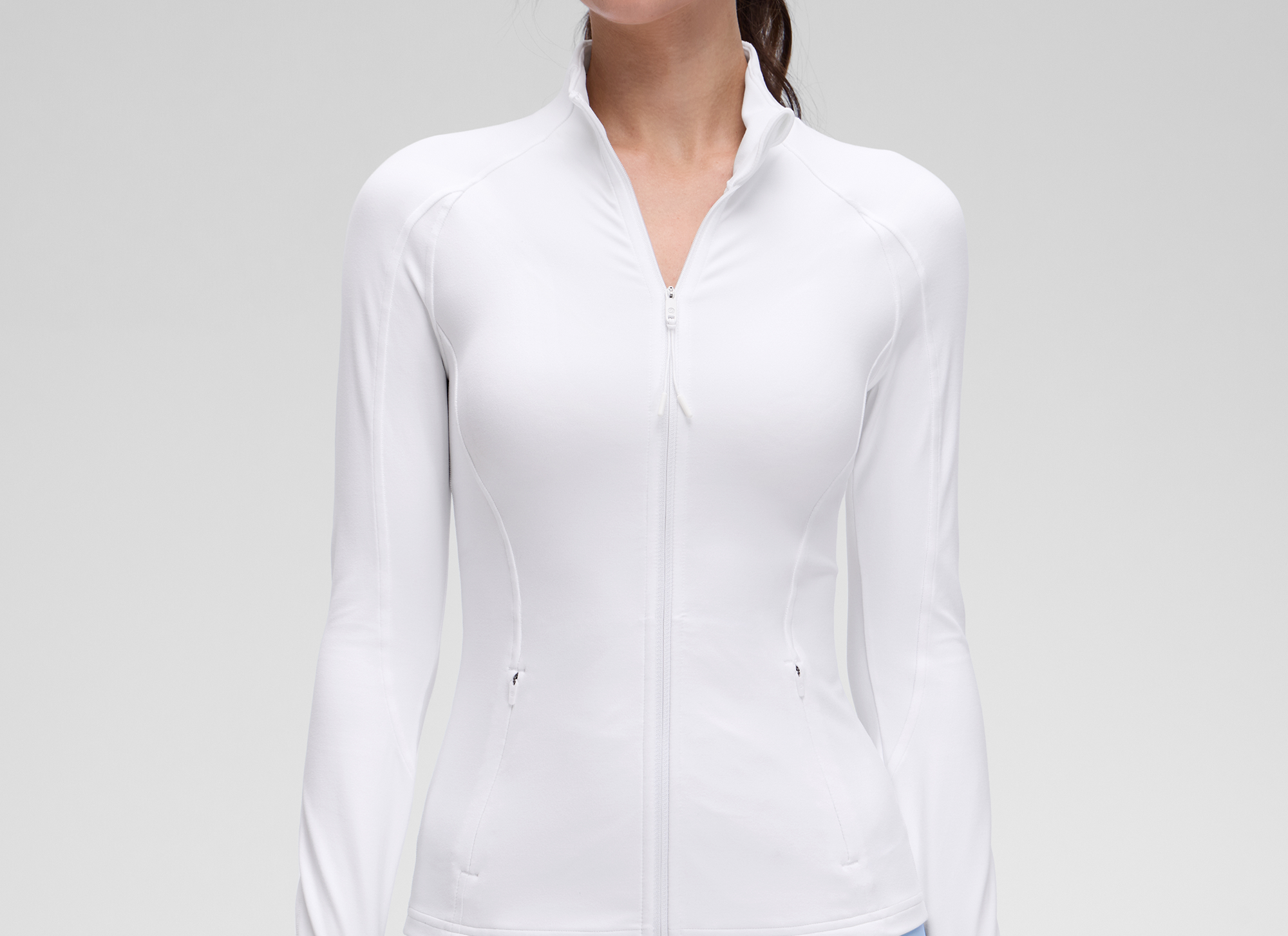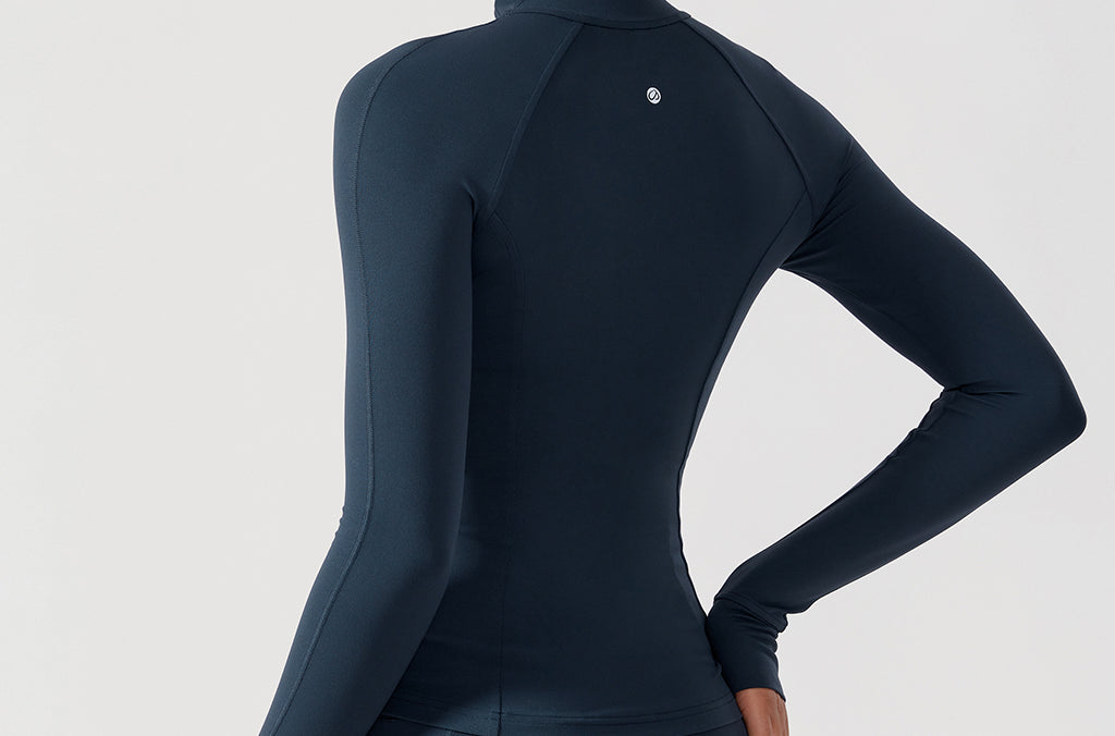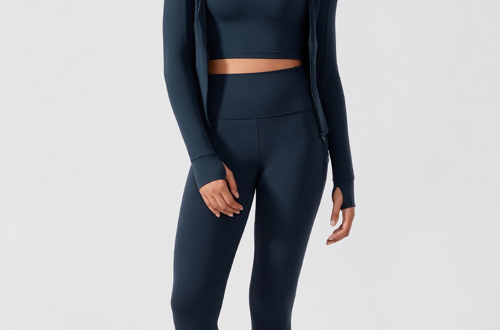 - Slim fit, hip length. Designed for workouts or daily wear