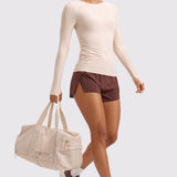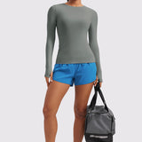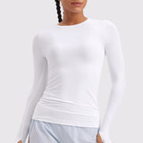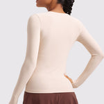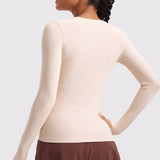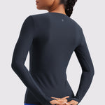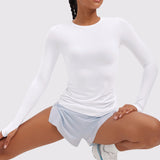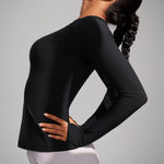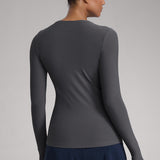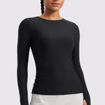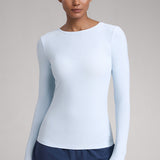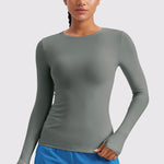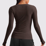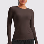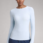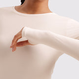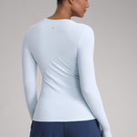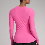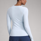 This fitted long-sleeve top combines barely-there softness with performance-ready comfort. The breathable, fast-drying fabric hugs the body while keeping you cool through every stretch or stride. A high crew neckline adds timeless simplicity, while thumbhole cuffs ensure sleeves stay in place—so you stay focused, not fussing with your fit.