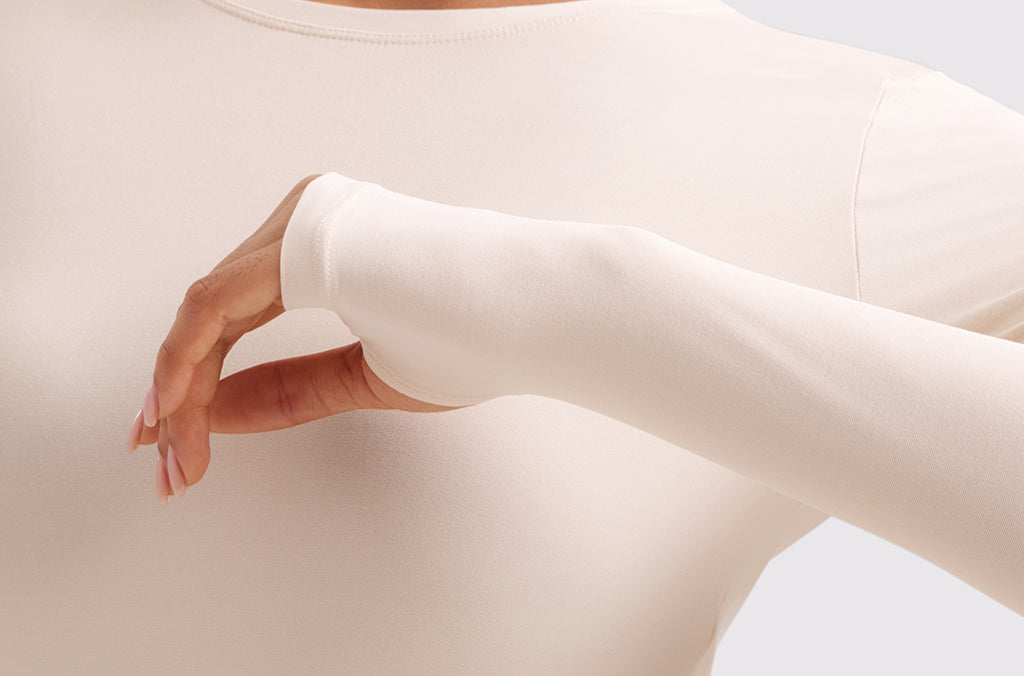 - Thumbhole cuffs keep sleeves secure while allowing free movement