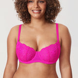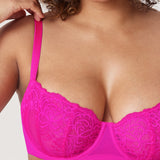 Show off your charm in this see-through lace balconette bra. Lightweight, breathable, with poke-free underwire, unlined cups for natural shape, and fully adjustable straps for the perfect fit.