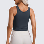 Elevate your active wardrobe with this irresistibly soft and stretchy tank top, designed for ultimate comfort and style. Stylish double-lined design, offers you a supportive fit without being see-through. The alluring scoop neck, perfectly frames your neckline, adding a touch of charm to your everyday look.